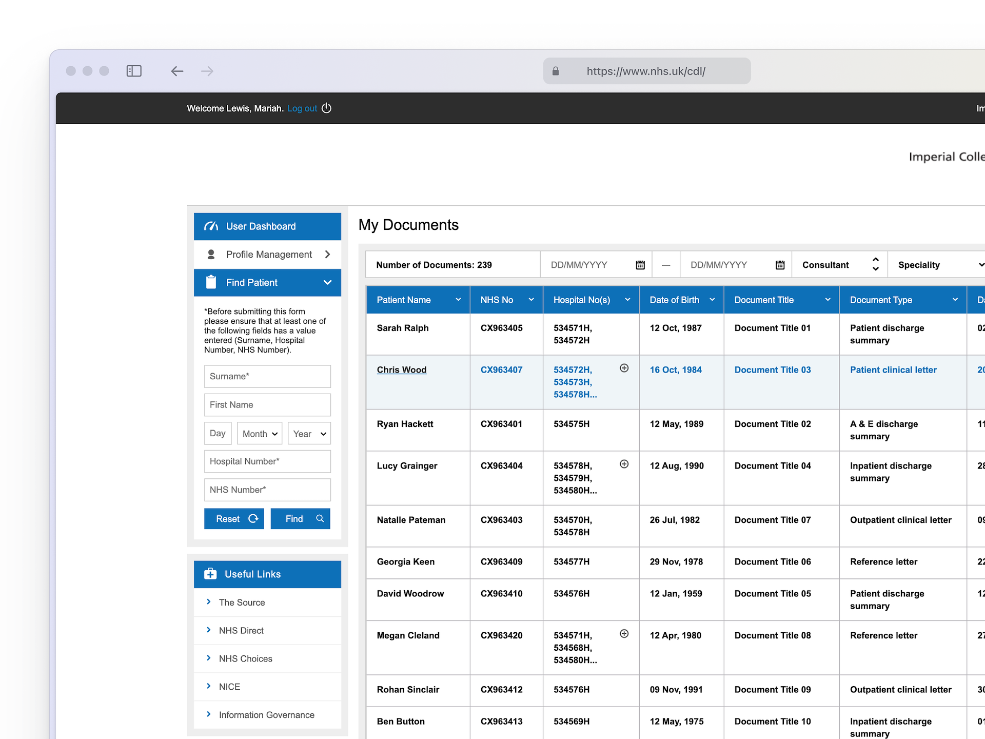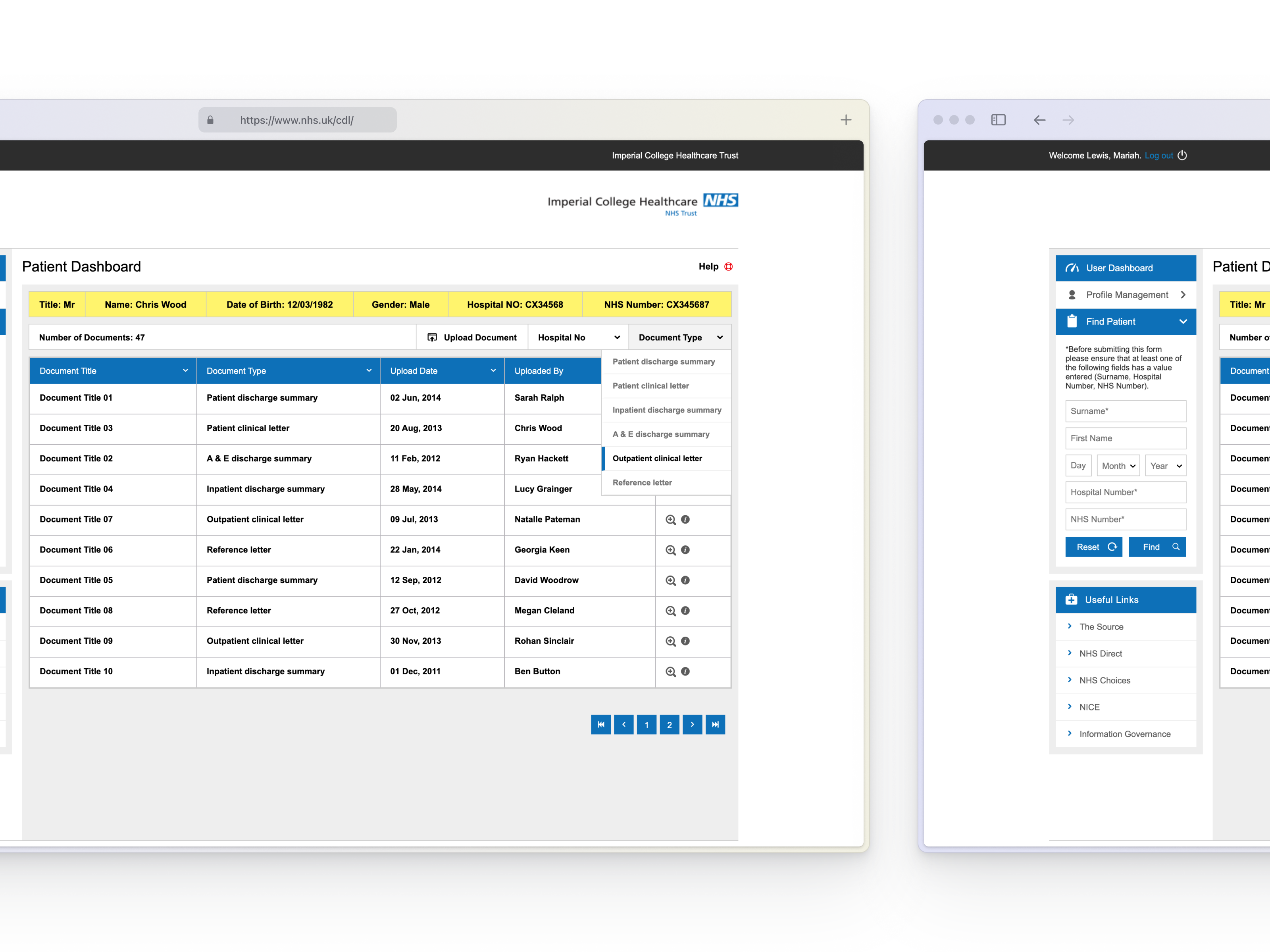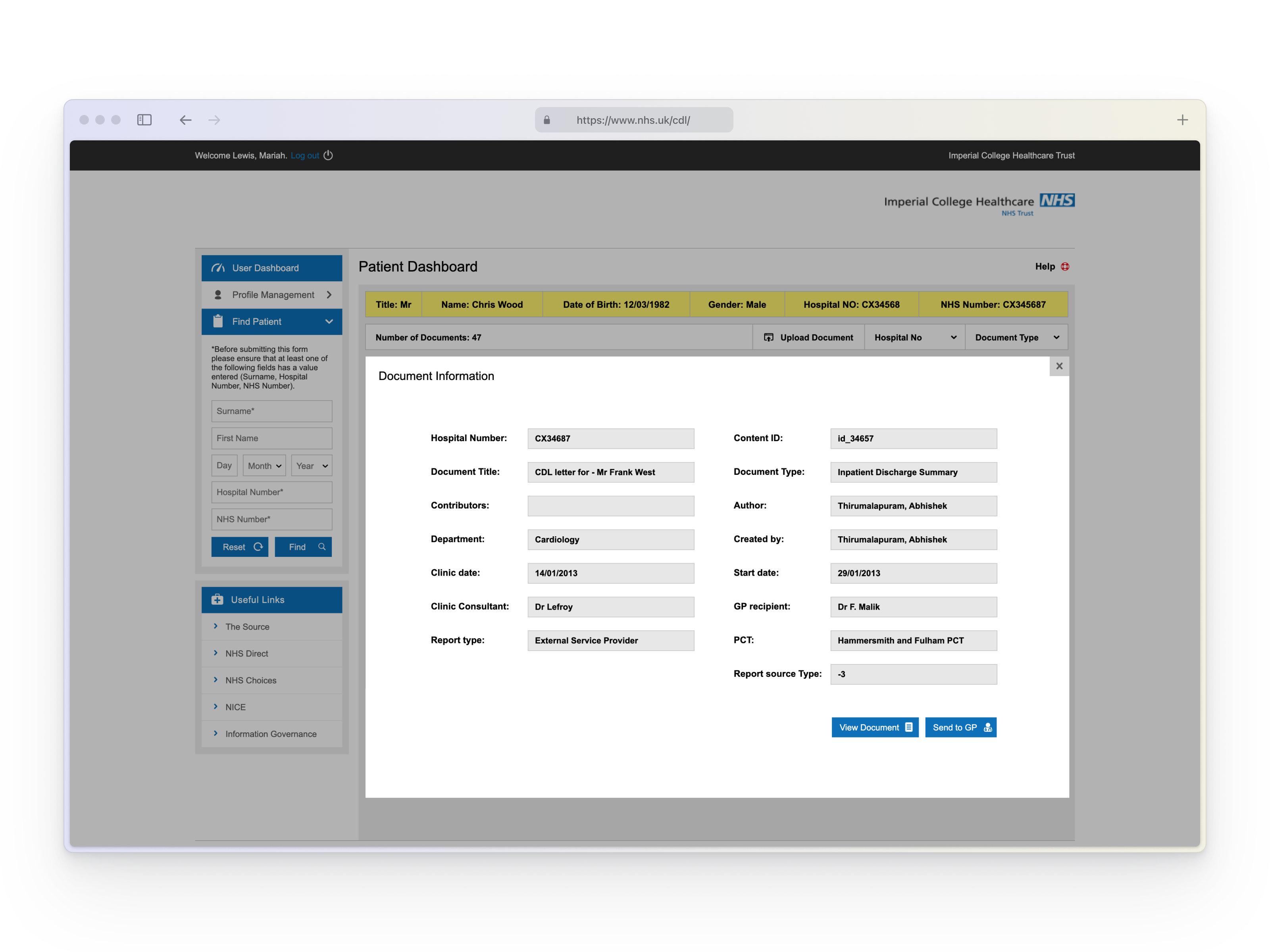 I led the end-to-end design and development of the Clinical Document Library (CDL), a secure, centralised digital platform for the NHS that enables healthcare professionals across the UK to access, manage, and share clinical documents—eliminating paper-based inefficiencies.
