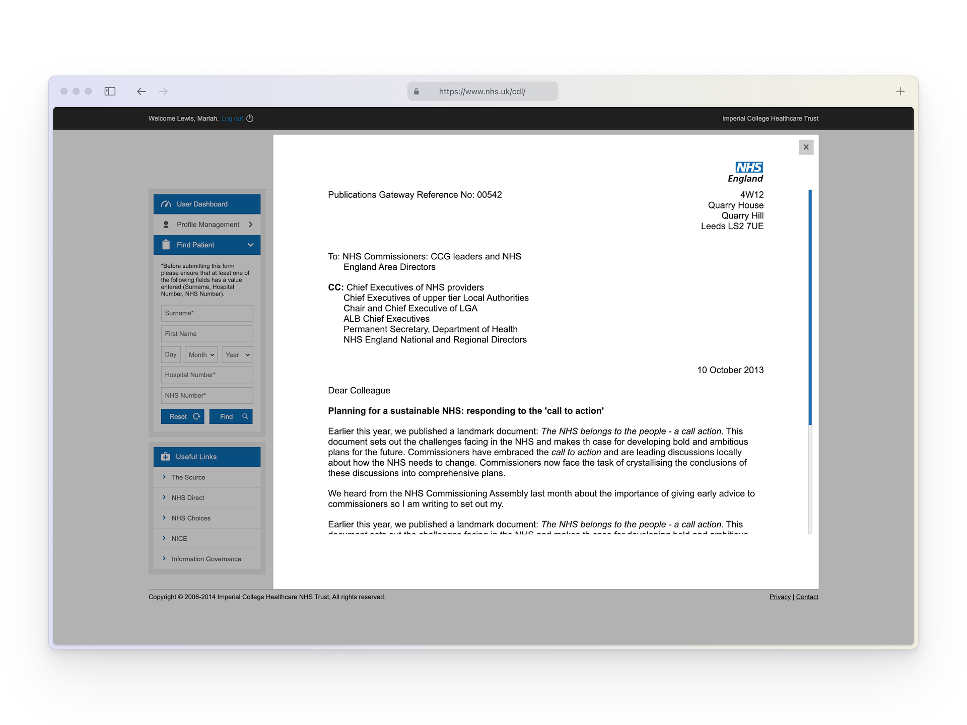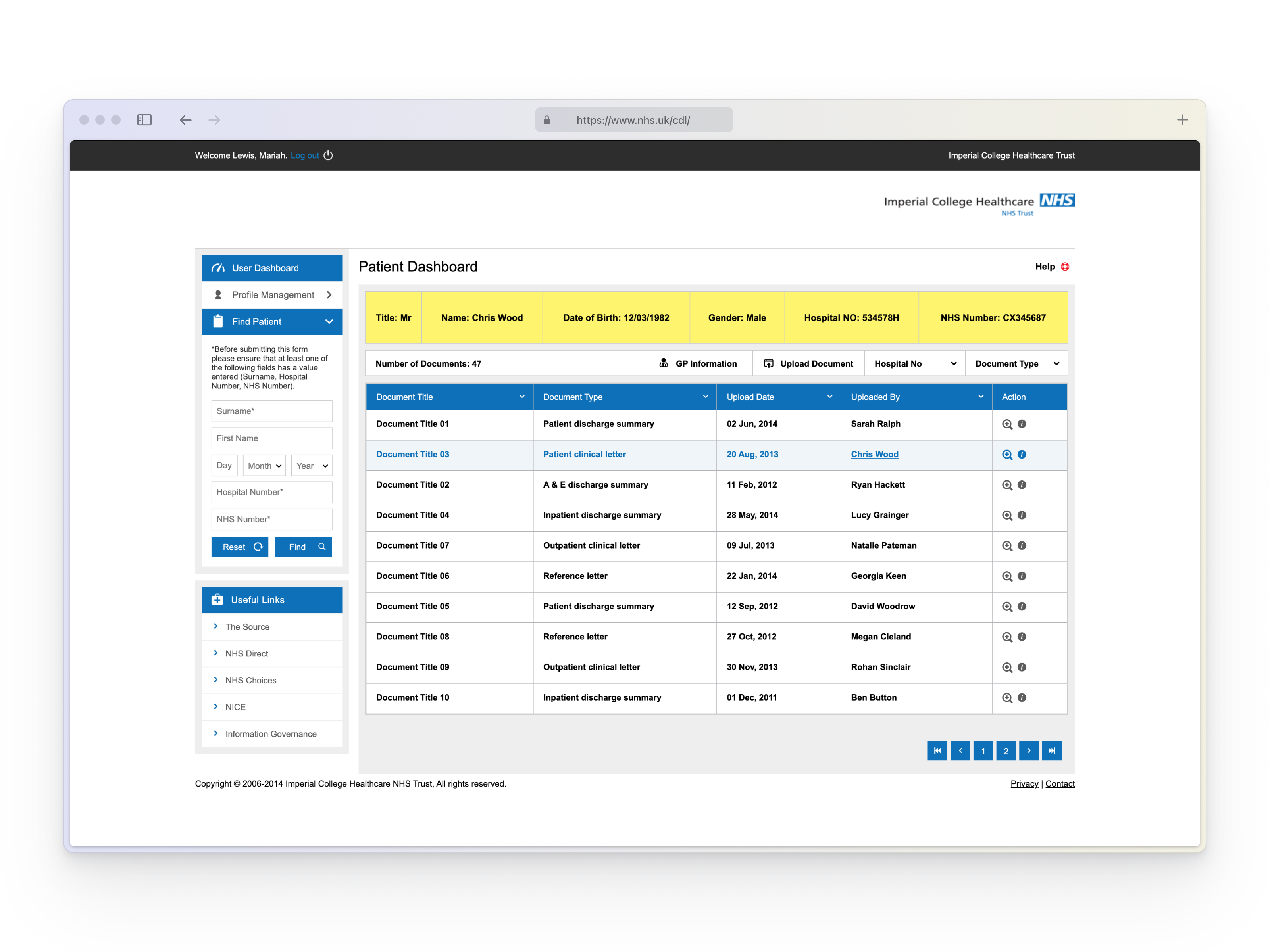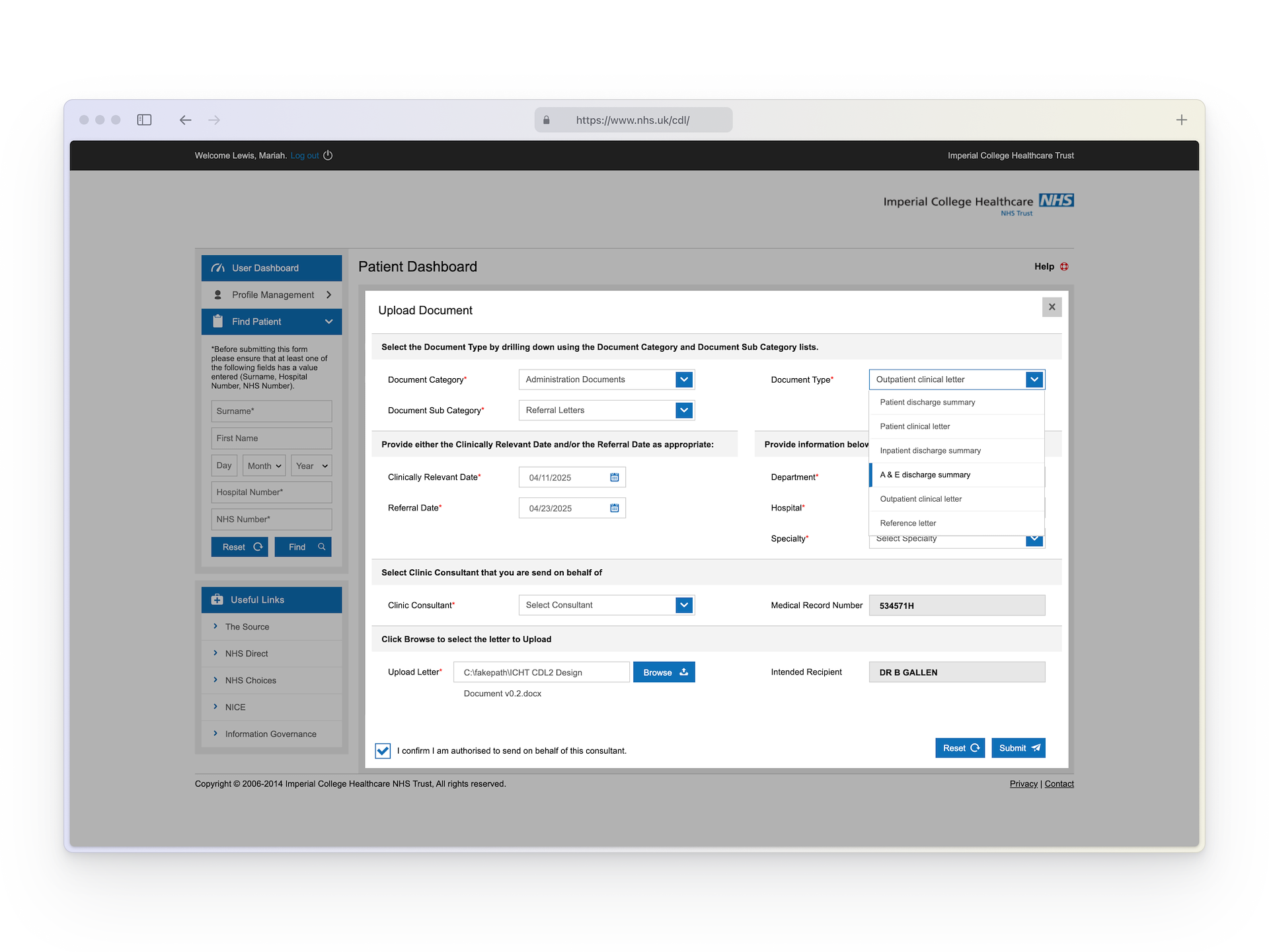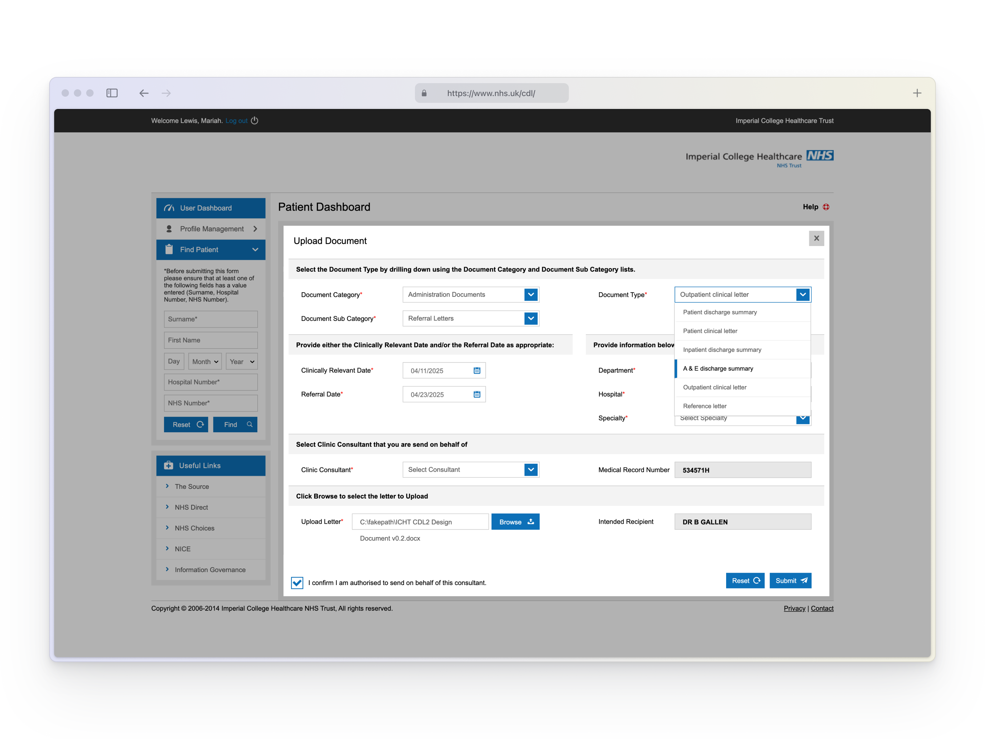 I led the end-to-end design and development of the Clinical Document Library (CDL), a secure, centralised digital platform for the NHS that enables healthcare professionals across the UK to access, manage, and share clinical documents—eliminating paper-based inefficiencies.